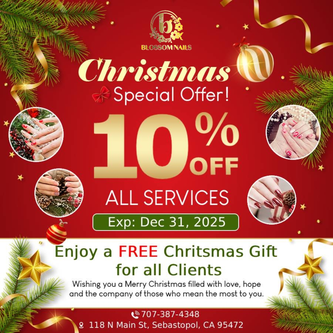 Blossom Nails- Skincare & Head Spa is a top-tier nail salon and beauty spa located in the heart of Sebastopol, CA 95472. We offer a haven of relaxation and rejuvenation, where you can escape the hustle and bustle of daily life and immerse yourself in a luxurious, tranquil environment tailored to your well-being.